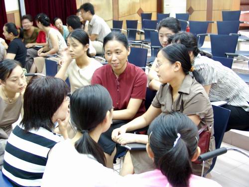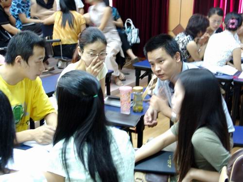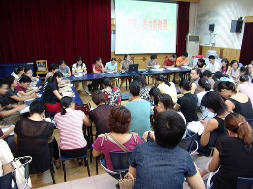 教师们时而专注倾听,时而举手发问,时而展开小组讨论,时而进行大组交流……8月20日至8月24日,局前街小学组织了为期5天的主题式校本培训活动,从信息技术、德育、课堂教学艺术、教师应有的研究方式等方面组织起各种形式的研讨培训活动。5天中,杭局长等专家的主题引领,同伴间的主题交流和碰撞,引发了大家对新课程背景下教育教学理解的激荡和冲突,促进了每一位教师对自己教育教学理念和实践行为的自觉反思。