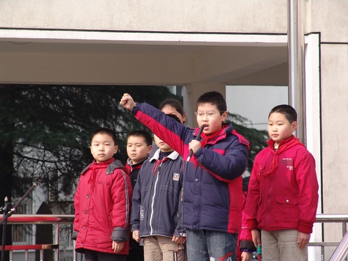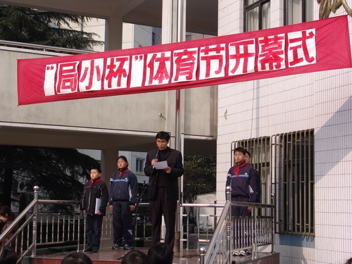 校运动队的运动健将们在激昂的国歌声中升起了鲜艳的五星红旗,体育节总指挥王浩老师向全校师生介绍了本届体育节的宗旨和活动项目,校长李伟平宣布“局小杯”体育节隆重开幕。随后,各年级学生喊响了自创的体育节口号:“天天锻炼,身体棒棒”“快乐体育,健康成长”“感激生命,积极锻炼”“参与 飞奔 磨练 奋争”……那一张张自信的笑脸在阳光的映衬下显得格外甜美,格外灿烂;那一声声铿锵有力的口号声响彻了校园上空,道出了师生们对成功办好这次体育盛会的坚定决心。