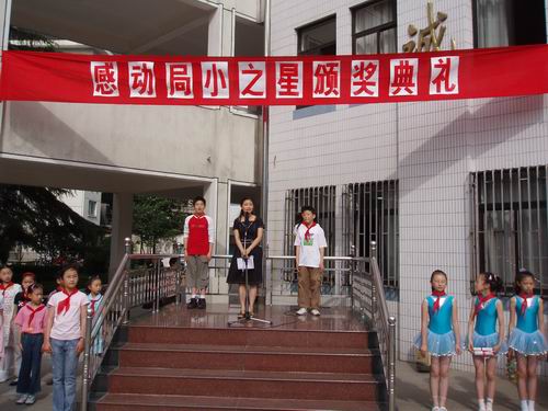 主持人深情的开场白后,“2005年感动局小的教师和团队”代表为全校师生揭晓了首届“感动局小之星”。他们是全校1800多名师生积极参与投票选举产生的。