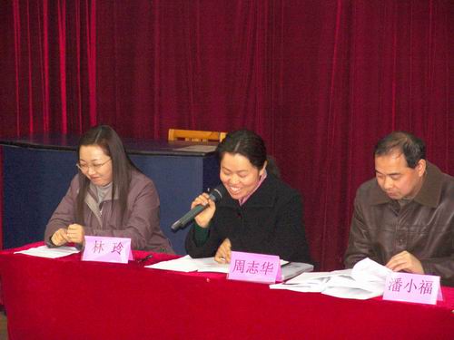 接着,2006年度感动局小团队及个人代表发言。周志华老师从改革管理方式入手,介绍了数学教研组建立“责任人”的新举措;陆琦老师代表六年级组的全体老师表达了彰显局小“轻负担高质量”办学风格的愿望;林玲老师从项目责任人、学科教师、备课组长的三重角色谈了自己新学期的打算。