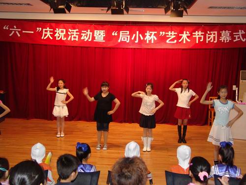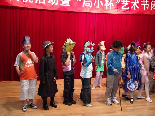 接下来的活动是由孩子们精心策划的“六一”庆祝活动暨“局小杯”艺术节闭幕式。参加这个活动单元的节目,都是在本届艺术节中,由学生们自编自导,在班级层面、年级层面、学校层面展示中,经过学生们的投票评选出来的最受欢迎的节目。而整个活动的创意和策划都是由几位五年级同学担当的。“要让每个同学都过个有意义而又难忘的儿童节!”孩子们精心挑选节目,邀请音乐老师为全校同学编排集体舞,进行化妆舞会的策划,用心设计串联词等等,忙得真是热火朝天,不亦乐乎。“对了,还要邀请聋哑学校的同学也来参加我们的活动,让他们也和我们一起分享‘六一’的快乐!”就这样,丰富多彩、童趣盎然的庆祝活动就在孩子们积极的创意中诞生了。活动中,跳跃的童心,灿烂的笑颜,都告诉大家,今天孩子们是最开心的……