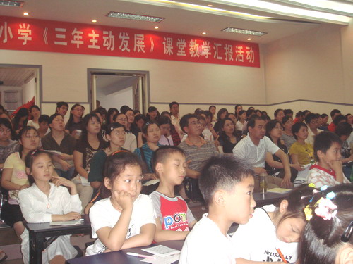 2007年6月6日,学校阶梯教室座无虚席,数学学科课堂教学汇报活动拉开了帷幕。活动推出了四节研讨课,分别由袁平平老师执教了二年级的《确定位置》,林玲老师执教了二年级的《可能性》,王冬梅老师执教三年级的《平均数》,王小霞老师执教了四年级的《用字母表示数》。四节课依据学生已有的知识基础与生活经验,把握教学内容的核心本质,明晰每一个学习活动的目标追求,有效组织教学活动。袁平平老师纵向研读教材,依托丰富的现实场景,以 “数的顺序”为主线,清晰呈现了确定物体位置的思维程序;林玲老师立足学生对可能性的“模糊”认识,唤起并不断丰富学生对事件发生可能性的体验,开展丰富有趣的学习活动,帮助学生逐步清晰“一定”“不可能”“可能”的实际意义;王冬梅老师准确定位“平均数”,在比较中突显“平均数”的内涵,并且突破教材,为概念的形成提供丰富的感性支撑;王小霞老师充分调用学生的已有基础,在现场活动中让学生经历从“特殊”到“一般”的过程,在经历与思考中掌握“用含有字母的式子”表示数量之间关系的方法,在辨析中提升学生对“用字母表示数”的认识。 四节不同类型的课,朴实中见精心,生动地阐述了我们对课堂教学的价值追求。
