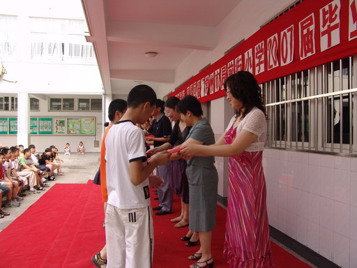 随后,在倾听了家长代表的发言之后,全体毕业生一起欢迎为她们操心了4年的李校长发言,李校长告诉每一位毕业生不要在意自己是进入哪一所中学,而要把自己全身心得投入到学习之中,这样成功肯定会向你招手微笑的。他的话给予了全体毕业生学习的信心和对自己未来的期待。