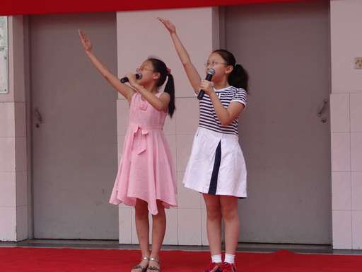 在毕业生和教师代表发言之后,毕业班的学生献上了自己排演的节目:六(1)班、六(2)班同学用自己激情的拉丁舞姿告诉母校自己长大了;六(6)班的符凡用自己创作的诗歌告诉母校我们永远不会放弃梦想;六(5)班的学生用自己的歌声告诉母校自己即将带着一颗感恩之心而离开。这些节目都是孩子们自己创作和排练的,已经是六年级的她们不需要老师过多的帮助和指导,每次节目排练好后,她们都会在一起进行讨论,以保证今天的表现对于她们来说是最棒的,因为每一位上舞台的学生心中都清楚这是自己能够献给母校最棒的礼物就是自己最佳的精神面貌,告知母校我们日后定会加倍奋进。
