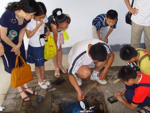 同学们首先参观了高露达饮用水的水源――深达187.78米的一口深井。据介绍,高露达饮用水是我市唯一一家使用深井水作水源生产桶装饮用水的企业。同学们从看水位的洞口测了一下这口深井当时的水位,还亲手从测水样的龙头口试了试水的温度。