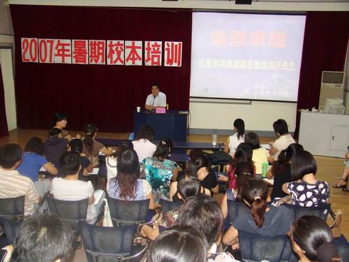 身为红星家具集团副总裁,徐国兴先生却显得特别谦虚。刚结束清华大学的学习,他就风尘仆仆赶往局小。徐国兴先生首先跟大家一起回顾了红星美凯龙的发展历程,他的交流显得特别朴实真诚。红星从1986年起艰苦创业,至今已在北京、上海、天津等21个城市开办了34家商场, 2006年销售总额突破106亿元,成为中国家居业的第一品牌,连续5年跻身中国民营企业500强前50位。