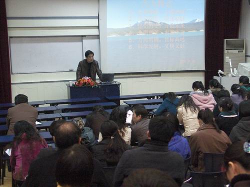 12月19日,开放的局小研讨室迎来了常州市教育局组织处梅向东处长。梅向东处长走上“局小讲坛”,和局小教师分享十七大报告学习体会,为局小教师作了一次生动的十七大报告学习辅导。党的十七大是在我国改革发展关键阶段召开的一次十分重要的大会。作为社会转型时期学校教育改革中的具体责任人,更应该深刻领会十七大精神,准确认识我们所处的环境,更好地投入到促进人的主动健康发展的事业中去。强烈的责任感和使命感,让每一个局小教师对这次学习显得尤为迫切。每一位教师在个体充分阅读的基础上,走进“局小讲坛”,和梅向东处长分享学习体会。