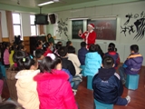12月24日,盼望已久的平安夜终于来到了,经过前期一个月的准备,今天,局小校园将上演隆重的“七彩英语,欢乐圣诞”系列活动的最后一幕——“英语日”。同学们早就按捺不住内心的激动,中午12:10一到,就纷纷涌到了各英语活动室。你听,音乐教室里传来了优雅的琴声和动听的英文歌声,游艺室里欢声笑语。你看,每个班的同学都围坐在电视机前看着原版电影捧腹大笑,最热闹的莫过于外教互动室了,大家争先恐后,你一言,我一语,外籍教师都有些应接不暇了。