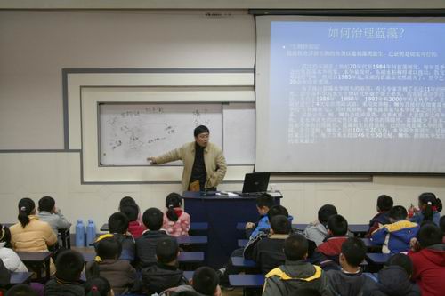 今天来自常州市通用自来水公司的周叔叔给我们带来了一场关于太湖蓝藻的精彩讲座。我听后不仅对他高超的演讲水平感到敬佩,更多的是感到了一种保护环境的责任感。