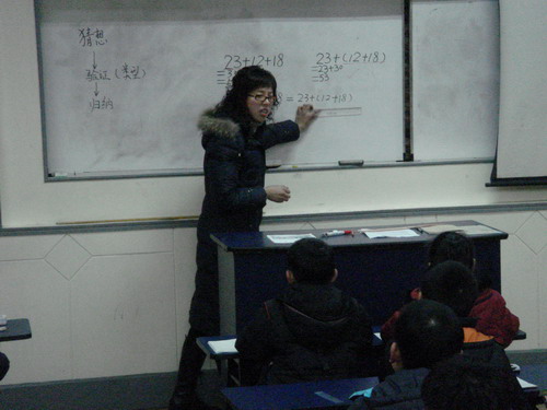 本次活动,围绕“运算律”专题,由新教师朱小伟和“新基础”第一梯队的吴小薇老师分别执教了《加法交换律》和《加法结合律》。第一节课对加法交换律的研究,学生经历了发现、猜想、举例验证、归纳概括的过程;第二节课充分运用第一节课的方法结构对加法结合律进行了研究。课后数学组的每一位老师就这两节课进行了深入的研讨,大家对运算率总体的结构形成了清晰的认识,同时对生成资源的捕捉、利用再次进行了深入地探讨。此次活动感受最深的就是朱小伟老师了,她说:“虽然我对于‘新基础教育’的认识还很肤浅,但是平时身边有这么多有经验的老师给我精心的指导,而且,经过这次的亲身体验后,真是受益匪浅啊!有大家的支持和鼓励,我一定会多加学习,跟上大家的步伐”。
