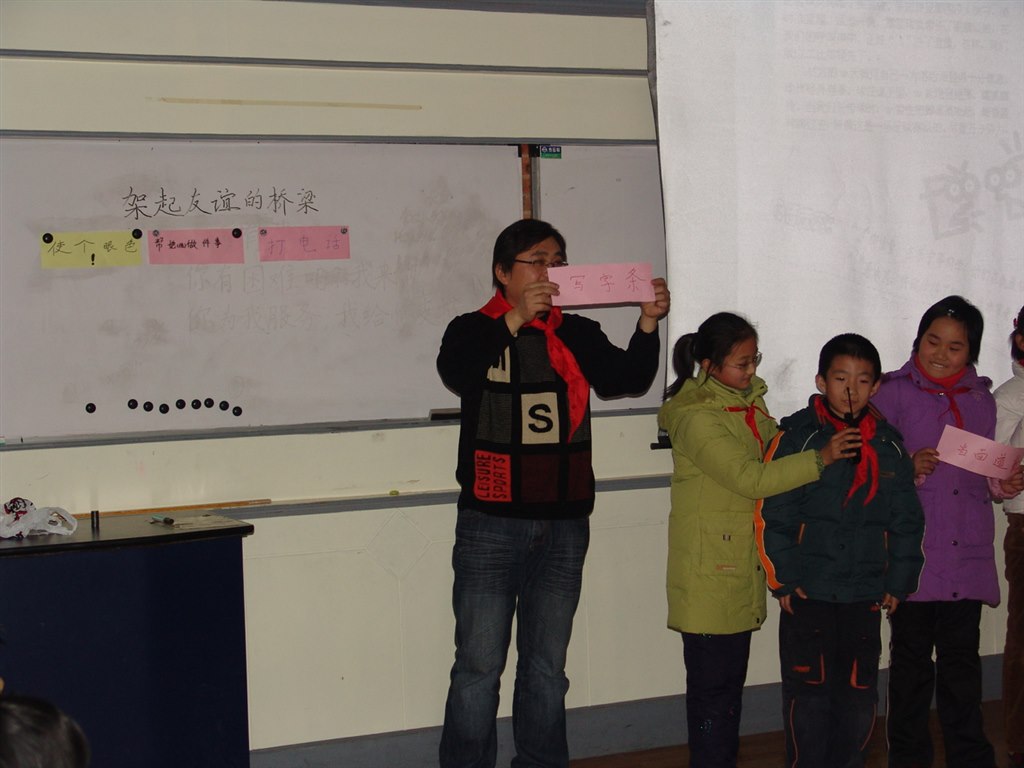 实验小学的耿银辉老师与他的孩子共同探讨如何《架起友谊的桥梁》。孩子们从身边的故事说起,“当好朋友闹矛盾时,可以用什么方法重归于好”。全班同学在小组讨论中迸发出了许多智慧的火花,集体交流时更是形式生动。当一曲《友谊地久天长》响起时,同学间的友谊进一步加深了。副总辅导员袁胜老师认为这堂课“贴近孩子,是一堂受孩子欢迎的课”。
