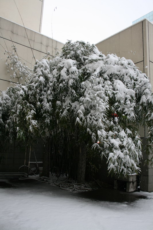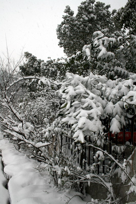 雪有话说,雪却无语,只做前滚翻后滚翻,袅袅娜娜,飘上枝叶,积成银白。