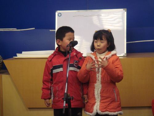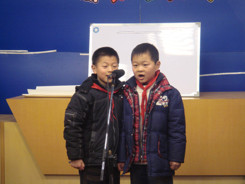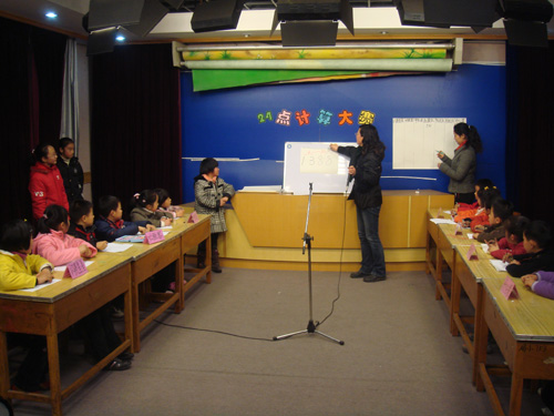 比赛现场,七个组合——“闪亮星星”组合、“必胜客”组合、“冲击波”组合、“红旗队”组合、“阳光队”组合、“彩虹队”组合、“开心果”组合精神抖擞地上场了,当评委老师宣布比赛开始时,小选手们个个都瞪大眼睛,快速地思考着,抢答着,气氛可热闹啦。电视机前的小朋友们也都不由自主地拿出纸和笔,参与到比赛之中。当小选手答对一题,阵阵呐喊声和加油声此起彼伏,响彻校园。