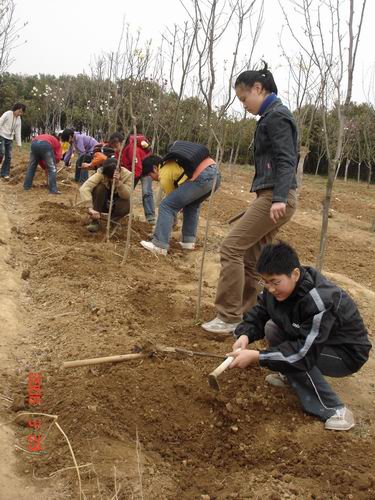 挥镐动土,每每,都为其成长奠基。树苗即希望,须悉心照料。