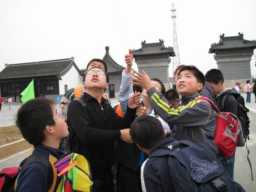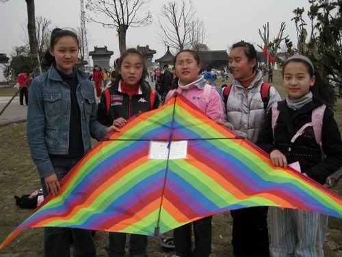 出新四军纪念馆,我们来到盛天植物生态园。午餐过后,同学们放起了风筝,那风筝似乎已不再是风筝,更是同学们对于蓝天的向往,对于快乐的向往,对于未来的向往。风筝在天上飞,我们在地上笑,笑声中,我们仿佛已经看见了自己的梦想像风筝一样越飞越高……
