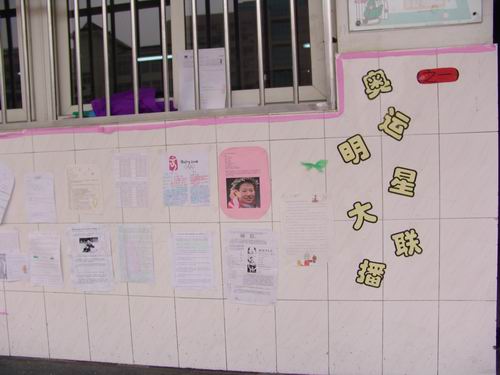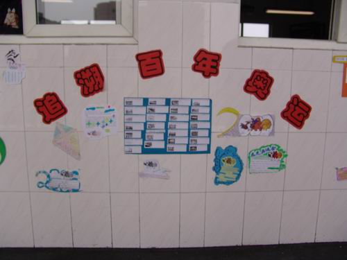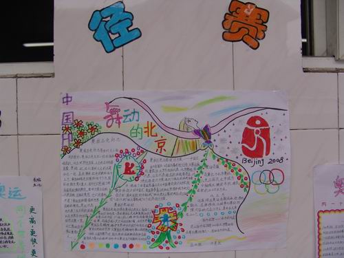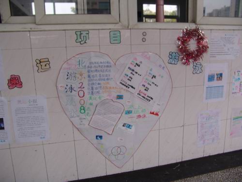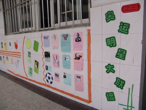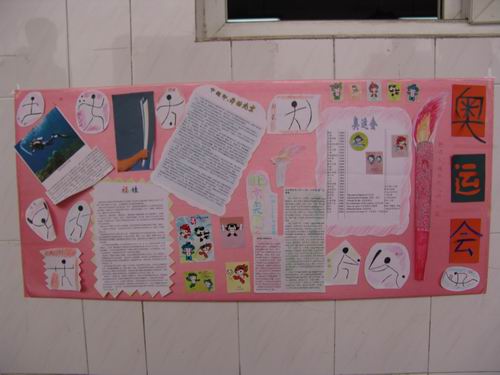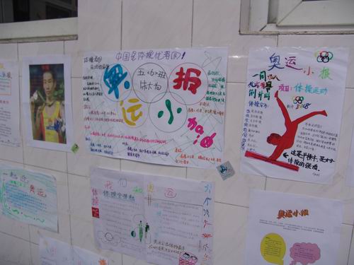4月7日,局小的校园里到处是福娃的笑脸,到处是龙娃的欢颜。局小所有的小龙娃们根据“奥运”主题,以年级为单位搜集资料,在教室门口的瓷砖上精心布置,成为一个个亮丽的奥运小窗口。