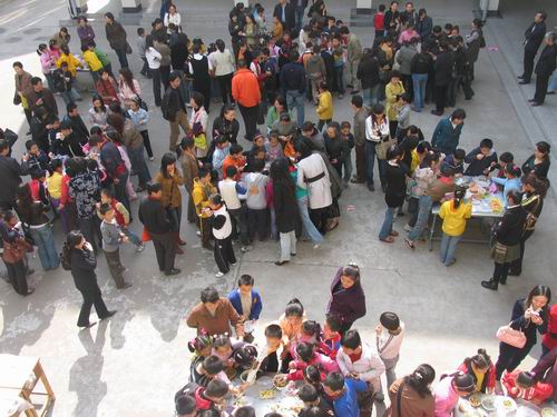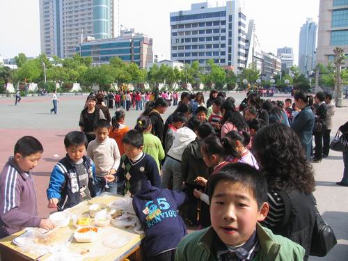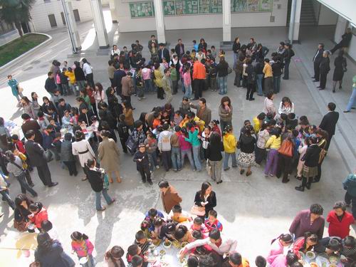 下午第一节,家长们在各班教室听课.家长们与孩子共同参与课堂,更真切地了解了学生学习的情况,从而对学校的教育更放心,更有信心。在听完一节课后,“龙娃小当家”活动正式拉开序幕,各班先在班级内交流学做菜的心得体会,同学们早已按捺不住激动的心情,一个个垂涎欲滴。会餐开始了,三年级的同学纷纷走出教室,各班教室门前热闹非凡,但秩序井然。孩子们在展示自己动手能力的同时也在分享着同学们的智慧,分享家长们给大家带来的快乐。很多家长也加入了尝菜的行列,还不时发出啧啧的赞叹声。