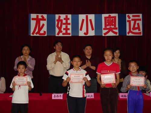在为期一天半的小小奥运会中,所有的小龙娃运动员用实际行动书写了奥运精神“更快、更高、更强”。一(7)班、二(1)班、三(5)班、四(1)班、五(3)班、六(6)班的运动员奋力拼搏,把自己所在的集体送上了年级第一的宝座。同时,还有5位同学打破六项校纪录,创造了新的好成绩。