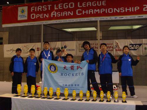 机器人俱乐部的成员虽然今年都是一些新队员,但他们却参加了世界、省、市的赛事。四(6)班.蔡沐凡、五(5)班袁梦、五(6)班杨弘毅与常州其它学校的五名学生共同组成的常州联队,作为华东地区的代表队赴日本参加FLL亚太锦标赛。比赛共有58支队伍参加,他们都是从世界上6万多支FLL队伍中层层选拔出来的。这些队伍中既有久经沙场的队伍,也有像我们这样第一次参加的年轻成员。我校的三位学生作为最小的成员,体验了课题答辩的智慧灵光,体验了挑战赛的惊心动魄,更是体验了国际赛场的美妙绝伦,最后获得的奖牌给他们留下永久美好的回忆。在江苏省机器人大赛中,五(1)班薛锞获遥控擂台二等奖,五(5)班顾逸、四(4)纪书阳宏获足球二等奖,五(6)班陈潇雨获灭火三等奖。在常州市2008“正衡杯”机器人大赛中五(1)班薛锞获遥控擂台一等奖,五(5)班袁梦、四(4)班李沅博、三(3)班范青林、四(5)班刘中煜获即兴创意二等奖,四(6)班.蔡沐凡、三(3)班范青林获FLL三等奖。