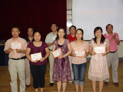 走进局小,这里爱洒心田。在下午的庆祝教师节大会上,李伟平校长带来热情洋溢的节日致辞。他说,做局小老师是幸福、幸运的;做局小老师是辛苦、忙碌的;做局小老师是光荣、自豪的。并结合“师爱”提出“爱国守纪、爱岗敬业、关爱学生、教书育人、为人师表、终身学习”六条师德规范与全校老师共勉。吕战亚副书记无比激动地宣布两条好消息:李伟平校长被评为“受群众拥戴的好校长”,姜明红主任被评为“江苏省第十批特级教师”。这些喜讯让大家人心振奋,倍受鼓舞。传统的师徒结对仪式把庆祝活动带入温馨时刻,三对刚刚结对的师徒欣然走向主席台,师傅向学生赠送书籍,徒弟向师傅表达心意。看着这些未来的教育精英们在成长的道路上找到了引路人,大家为他们感到由衷地高兴,祝愿他们在师傅们的悉心指导、耐心帮助下茁壮成长,共同支撑局小教育的蓝天,缔造局小教育的辉煌。二十分钟的“开心一刻”,把庆祝活动推向高潮,“心心相印”的游戏闪现出教师的智慧,迸射出生活的激情。会场上留下了老师的欢声笑语,大家笑声中互相传递着祝福、友谊与快乐!
