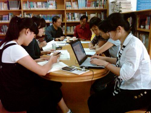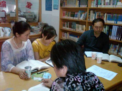 2009年9月17日下午,英语组全体老师在校图书馆进行了本学期第三次英语教研活动。来自泰州、泰兴的吴校长与袁校长也前来观摩指导。