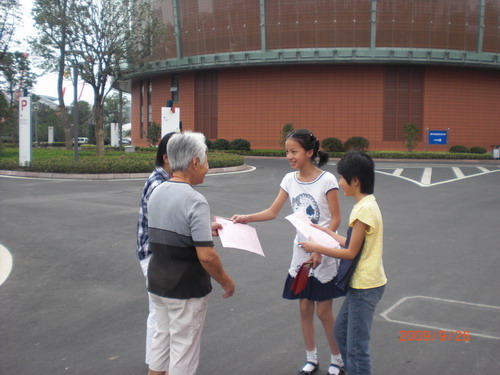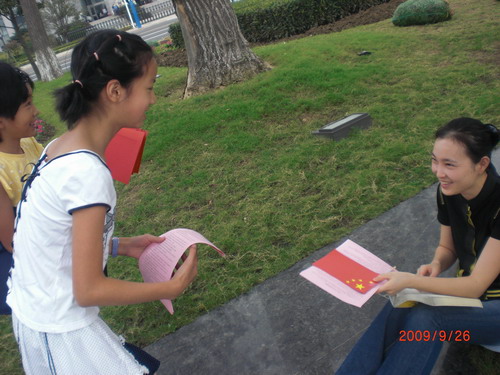2009年10月1日是祖国妈妈六十岁的生日。在这样一个红星闪耀的学期里,局小五、六年级的龙娃开展了“为祖国服务”的志愿者活动。他们利用综合实践活动课,认真制定了活动方案。上周六,龙娃们开始行动啦!他们来到社区打扫卫生,美化环境;来到敬老院慰问老人,送去温暖;来到街头分发自制的五星红旗,表达爱国热情……对祖国的浓浓热爱之情已经化为他们美丽的行动……