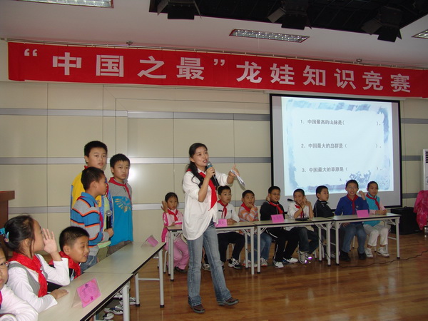 比赛分成五个版块,第一版块是知识竞答,来源于各个领域的“中国之最”丝毫没有难倒知识丰富的龙娃们。第二版块是省市竞猜,少先队员借助课内的知识轻松作答。第三版块是“中国人物”,组员们亲密配合,再次顺利闯关,当答到一组家乡名人时,龙娃们充满了自豪之情。第四版块是“导游招聘”,孩子们或小队,或个人,对祖国的风景名胜进行了精彩的介绍。第五版块是“模拟阅兵”,选手规范的“正步走”让国庆阅兵在局小再次上演。场内欢笑不断,场外掌声震天。