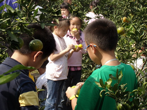 三年级的龙娃们来到了龙头渚公园,这里山清水秀,可以说是一幅天然的江南山水画。午餐后,孩子们排着队去采摘桔子,果园里硕果累累,桔子压弯了枝头。同学们三五成群,欣喜地穿梭在果园里,采下一只只黄澄澄的大桔子。凑近一闻,顿时一股清香沁入心脾。掰下一片轻轻放进嘴里,酸酸甜甜,真好吃啊!大家每个人拎着一小袋桔子,满载着收获,满载着喜悦,凯旋而归!
