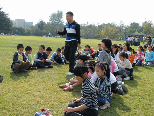 四年级的龙娃们来到金桂飘香的青枫公园,他们沐浴着秋日的阳光,浸润在桂树的香海之中,观赏植物、沙滩嬉戏,一个个玩得可尽兴了。不仅如此,小龙娃们还在教官的指导下,进行了体能训练,尽管还是小学生,可是听命令喊口令的那股神气劲儿好比英勇的解放军叔叔。除此之外,教官们还为同学们精心准备了新鲜有趣的游戏,这让小龙娃们一个个劲头十足,兴奋不已。