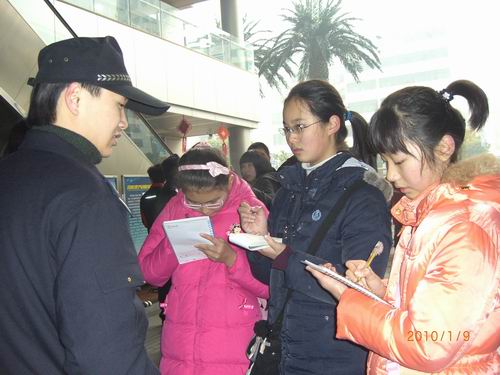 1月10日上午,常州市钟楼区民警支队与我们局前街小学小记者团,在南大街步行街宣传点进行了一次面对面的交流活动,民警们乐呵呵地解答着我们对民警生活诸多的疑惑和好奇。