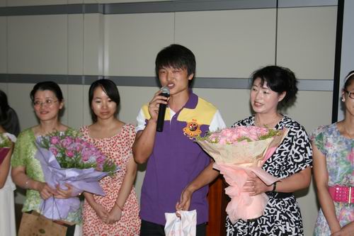 接着,工会孙主席宣读了校“168爱生先进个人”和“师德模范个人”的名单,被评为先进的丁玉平老师和王玥老师分别讲述了她们在过去一年中的爱生故事。秀美的丁老师为我们讲述了她与学生们相处的片段,从焦虑不适到从容淡定,她逐渐走近学生,努力发现每个学生身上的闪光点,使他们扬长避短,日臻完美。端庄的王老师与我们分享了一则细腻温馨的故事——《可爱的孩子,让我拥抱你》,小小的故事由王老师娓娓道来,同样让在座每一位老师从内心深处涌出一种热切的感动。