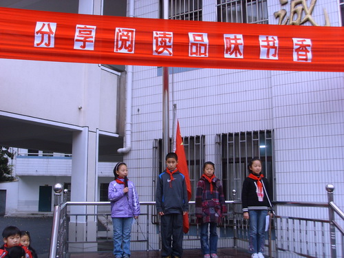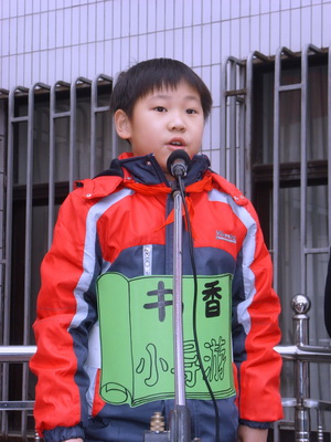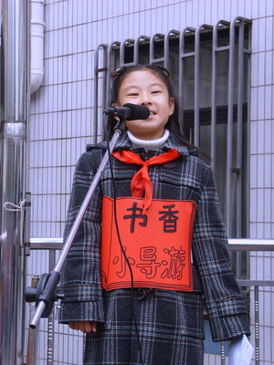 今天是2010年局小读书节的开幕式。三位书香小导游热情地向全校的小龙娃们介绍各个年级在本届读书节中的活动内容。本届读书节除了设计“节徽”、与知名作家面对面、开展读书节主题班队活动这些传统活动之外,各个年级都有着各自不同的阅读内容和交流方法。