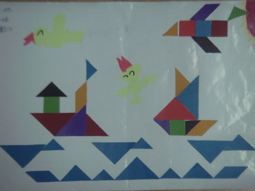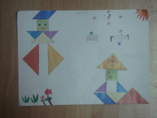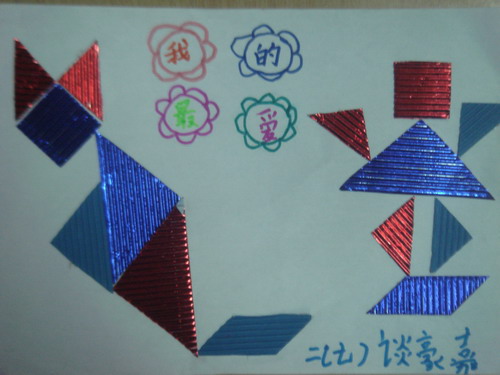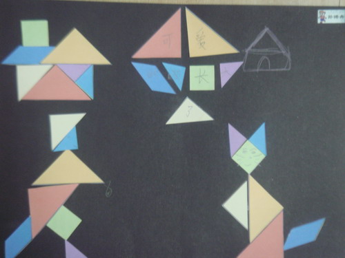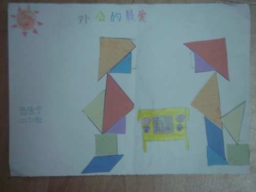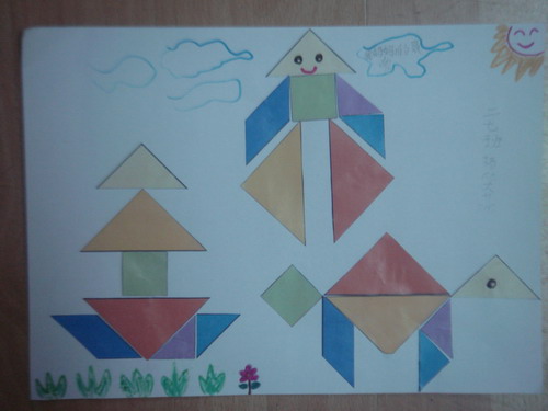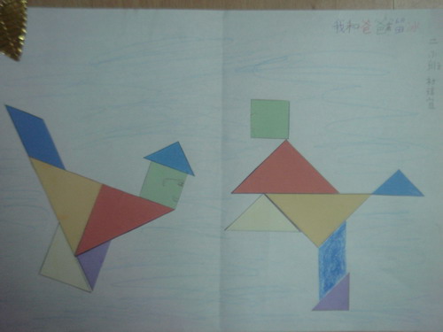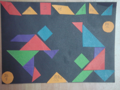二年级的小朋友们在学完了多边形知识之后,开始了七巧板的奇妙之旅。课堂上,大家先了解了七巧板的来历,领略了它的神奇,接着又用两块、三块、四块、甚至更多的块数拼出已经学过的各种图形,尽管是同样的图形,可大家的拼法却是多种多样。在学会了亲手制作七巧板后,大家用自己制作的七巧板拼出了美丽的世界:有可爱的山羊,悦动的舞者,苍翠的青松,还有些拼出了一个个有意思的故事。这些有趣的拼图展示了孩子们丰富多彩的学科生活。