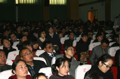 常州市教育局局长丁伟明先生发表重要讲话。他表示,贯彻各级“中长期教育改革和发展规划纲要”中的育人为本,德育为先的指导思想,班主任理应成为纲要引领下的德育行动的中坚力量,本次会议在常州举行,既是对常州教育的充分肯定,又是常州提升德育行动水平的有效途径。班主任需要将道德观和价值观传递给孩子,责任重大,在当前环境下如何寻找,如何以正确的方式表达、传递给学生是需要研究。另外,从学校角度来讲,也要认清德育工作的真谛,不能让班主任成为学校德育的代名词,更要各学科教师重视发挥学科育人的价值。最后,丁局长也对与会的老师提出了殷切希望,希望大家不仅仅做倾听者,而要能够通过交流来唤醒个人内在的德育意识、德育思想。