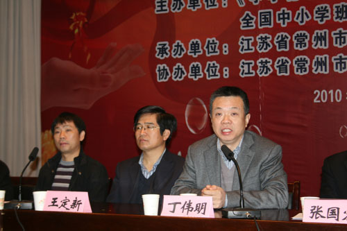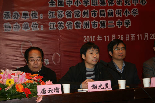 《德育报》报社社长兼主编张国宏发言中指出,“世界上最美的风景是人的思想”,希望本次会议能成为思想碰撞的会议,目的是发现新人,宣传新人,从而推出优秀的青年班主任。虽然班主任工作是一门年轻的学问,但在这样一个可以做好、做精致的时代中从事班主任工作要满怀信心,因为无论是理论方面还是实践、经验方面都已经有了丰实的准备。他说,胡锦涛提出2020年基本实现教育现代化,就要求我们教育工作者首先实现思想现代化,既要掌握现代的科学技术也要有着向世界学习的胸怀与责任,从这一点上说常州市教育局主办这次会议,就是思想现代化的最好体现。教育需要包装,需要教育工作者以适当的方式传递给孩子们对生活的热爱,对岗位的忠诚,这就需要老师们既有像胡锦涛主席所说的“干货”式务实的作风,有像习近平副主席所说的“踱方步”式的从容和平和的心态。最后,他祝愿常州市局前街小学,祝愿常州教育能成为江苏教育乃至中国教育的名片。随后,他还展示了由全国优秀班主任王文英老师亲自设计的会旗,会旗颜色艳丽,可爱而又不失端庄,寓意深远,充分展示了一位优秀班主任的教育工作的深刻见解。