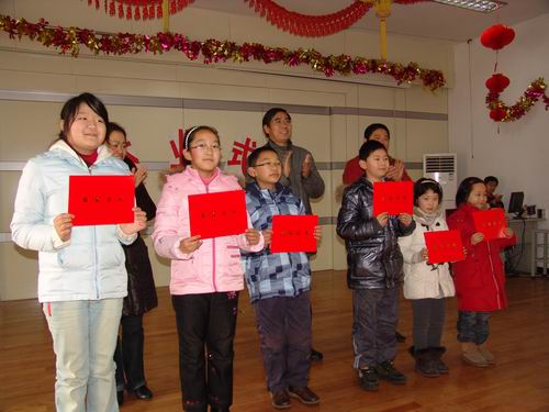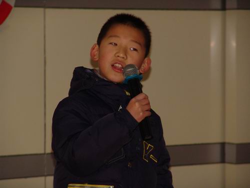 一(3)班的许开鑫小朋友想起快乐的秋游就喜上眉梢,觉得自己在淹城动物园比老虎大王还神气,忍不住把“开心”二字作为礼物送给全校同学。二(4)中队的唐果小朋友特别喜欢小队活动,觉得在小队里很甜蜜,她把这份感觉送给大家作新年祝福。三(2)班的孙熙文同学的名字中带个“喜”字,她传递的是在“微笑行动”中的欢喜。四(1)班的水兵同学印象比较深的是那一次的“心花献给警察叔叔”的升旗仪式,他希望所有的同学新年里平平安安。五(4)中队的金小桐同学脑海里第一个跳出来的就是今年的元旦庆祝活动,“家和万事兴”,局小人一路同行,一路同心,非常幸福。六(3)中队的周珂聪同学说起了“爱留母校”的毕业序列活动,祝愿每一个老师,每一位同学在局小一天比一天更聪明!