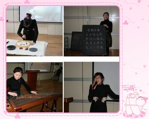 语文组的卢赟和杨丽铭两位老师用古筝、演唱、朗诵、书法和粉笔字,展示了各自的才艺和语文教学基本功,并分别用一个个故事,具体讲述了各自前不久参加局属小学语文教学基本功竞赛的备战过程。