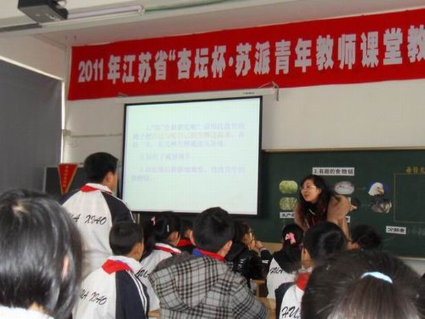 3月23日至25日,2011年江苏省“杏坛杯·苏派青年教师课堂教学展评”活动在丹阳市华南实验学校隆重举行,局前街小学耿群志老师执教的六年级科学《有趣的食物链》一课脱颖而出,荣获一等奖。