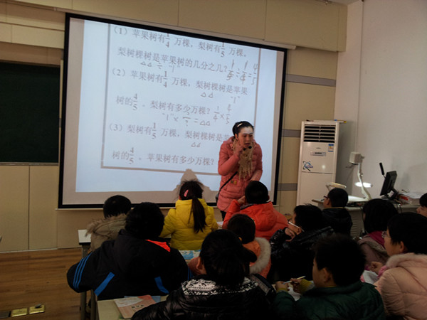 2013年1月10日,室外寒意料峭,室内却暖意融融。在局小二号楼四楼多媒体教室,正举行着六年级数学备课组的复习研讨活动,由章子君老师承担《分数应用题》的复习课。周志华主任、六年级数学备课组的全体老师、数学教研组的部分老师全程参与了本次活动。