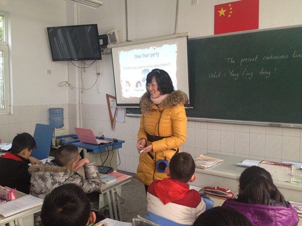 周丽老师带来的是五年级的语法复习课《The present continuous》。课前,活泼轻快的英语歌曲《Happy New Year》活跃了课堂气氛,使学生带着愉快的心情进入了学习。周老师的课堂开放互动,结构清晰,她创设开party的情境,培养孩子们自主提问的意识,带领大家从现在进行时的意义、句型结构和词法三个方面进行复习,并让学生进行相应的专项练习,让学生细细诊断大家在练习中出现的一些问题,从而有效地突破了一个又一个的难点。孩子们在周老师的带领下,进一步明晰和巩固了五年级最重要的一种时态,收到了很好的复习效果。