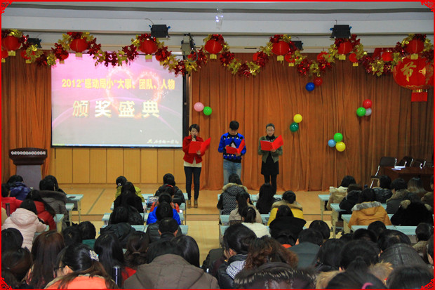 一曲温暖人心的《大手牵小手》拉开了2012感动局小颁奖盛典的序幕。李校长带领大家盘点了局小教育集团一年来的收获,揭晓了“感动局小”十件大事:1.举办110周年校庆系列活动,办学文化实现新传承。2.“局前街小学教育集团”迎来新局面,集团办学获得新突破。3.“新基础教育”扎根研究顺利结题,“生态式”发展迈上新征程。4.“生命关怀”教育理念研讨会顺利召开,学校文化彰显新内涵。5.承办市“天禾”数字化学习论坛活动,e学习项目展现新活力。 6.《飞吧,小鸟》主题系列活动影响深远,“生命关怀”理念凸显新品质。7. 局小学生精彩亮相局小110周年校庆系列活动,学生成长再创新高度。8.开展“种太阳”爱心传递活动,“感激教育”孕育新温暖。9.青年教师基本功比赛全面“开花”,教师发展实现新跨越。10.深度对接国内外教育代表团,教育开放化开启新平台。