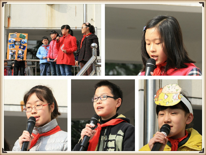 听,三个包干区的值日生向大家绘声绘色地描述了校园美景,讲述了自己每日打扫校园的感想,他们在呼吁“你我携手,共筑文明校园”;看,四位班级小记者点评了校园午餐情况,用幽默风趣的三句半将 “光盘行动”的号角吹响,他们在邀请“你我努力,拒舌尖上的浪费”;瞅,三位同学自演病毒,诙谐凝练的语言,带领大家在生动活泼的介绍中了解病毒,掌握预防病毒的方法,他们在号召“优质生活,健康习惯不可少”。