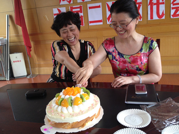 最后是本次活动的高潮。即将退休的张琴老师和沈小娟老师简要地为我们回顾了她们学习英语的历程,在动荡的文革年代她们耗费了大量的青春,英语学习都是通过两年的中师学习以及工作后的自主学习学得。张老师给了我们两个关键词“做事用心”和“研究学生心理”,在每节课后及时反思,真正提高课堂40分钟的效率。沈老师一向待生如子,她关爱学生同时在学生中又有极高的威信,她给大家分享了课堂组织,板书设计方面的宝贵经验。