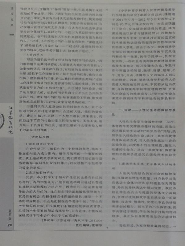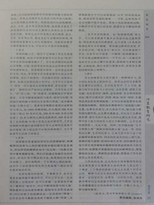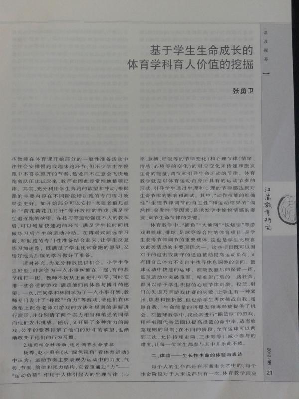 201309张勇卫《基于学生生命成长的体育学科育人价值的挖掘》发表在《江苏教育研究》