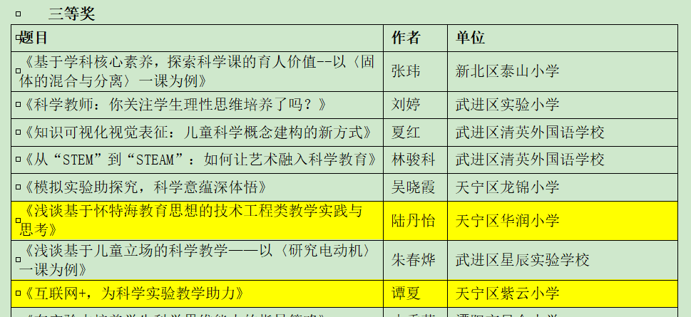 回顾上学期,主要在三个方面有所突破:1. 个人成长——4位教师参与区评优课选拔,全部获得区一、二等奖;2位教师参加市评优课比赛,获得市一等奖。2. 研究论文——上学期共有6位成员参与市小学科学年会论文评比,有5篇论文获市一、二、三等奖。3. 范式建设——先后有4位教师以互+课堂范式为蓝本开设公开课,2节区级2节市级,向区域和全市科学教育同行展示了天宁科学教师的智慧。