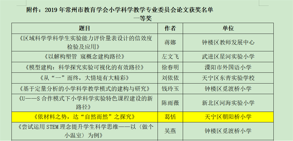 4 | 陈文琳 | 《不同的声音》 | 创新性实验材料 | 市骨干 |
