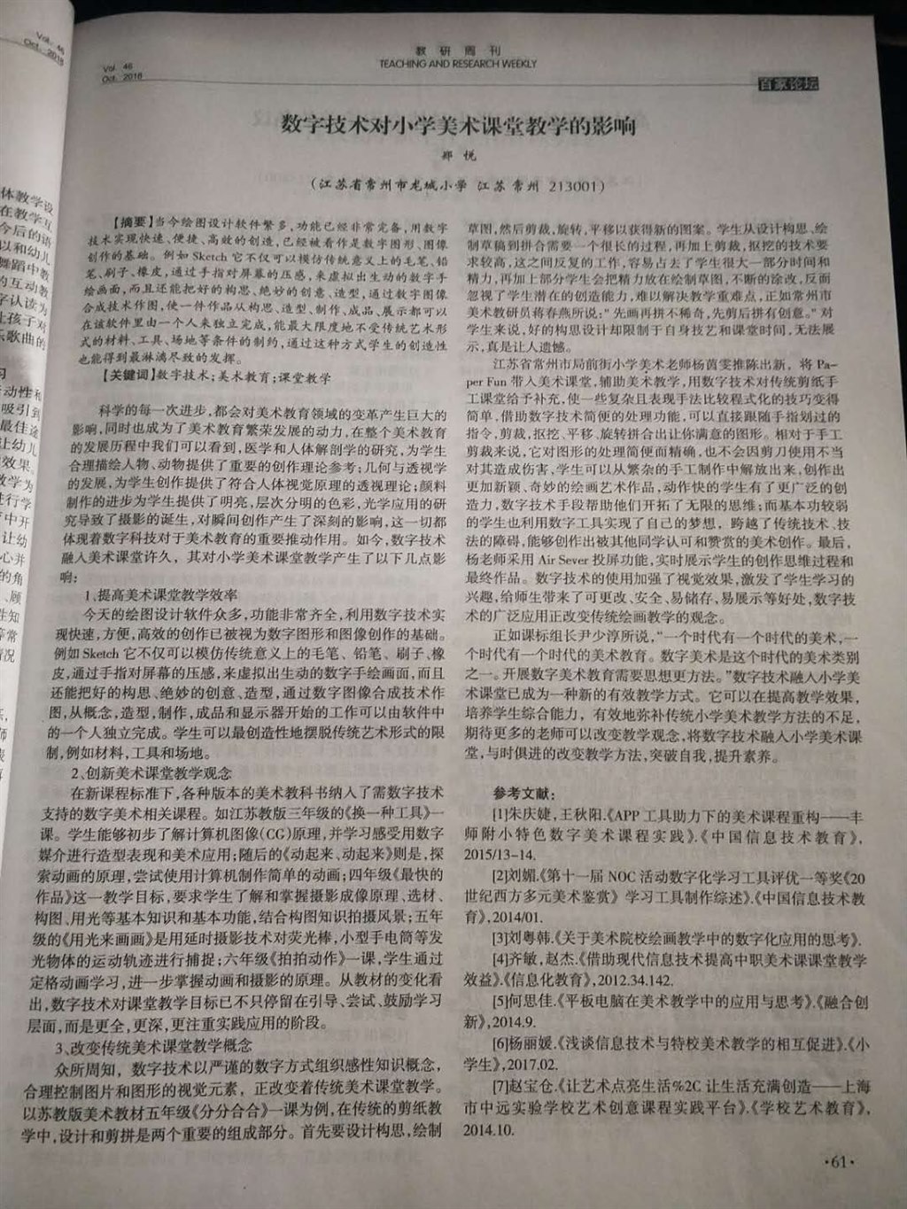 发表论文《数字技术对小学美术课堂教学的影响》