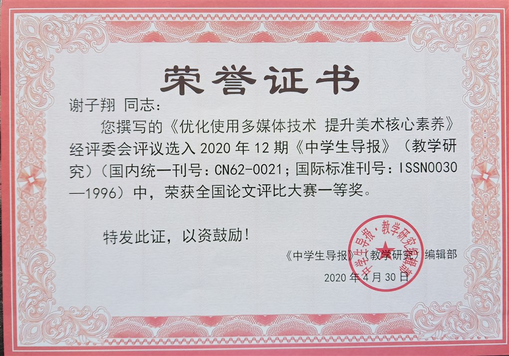 发表论文《优化使用多媒体技术 提升美术核心素养》