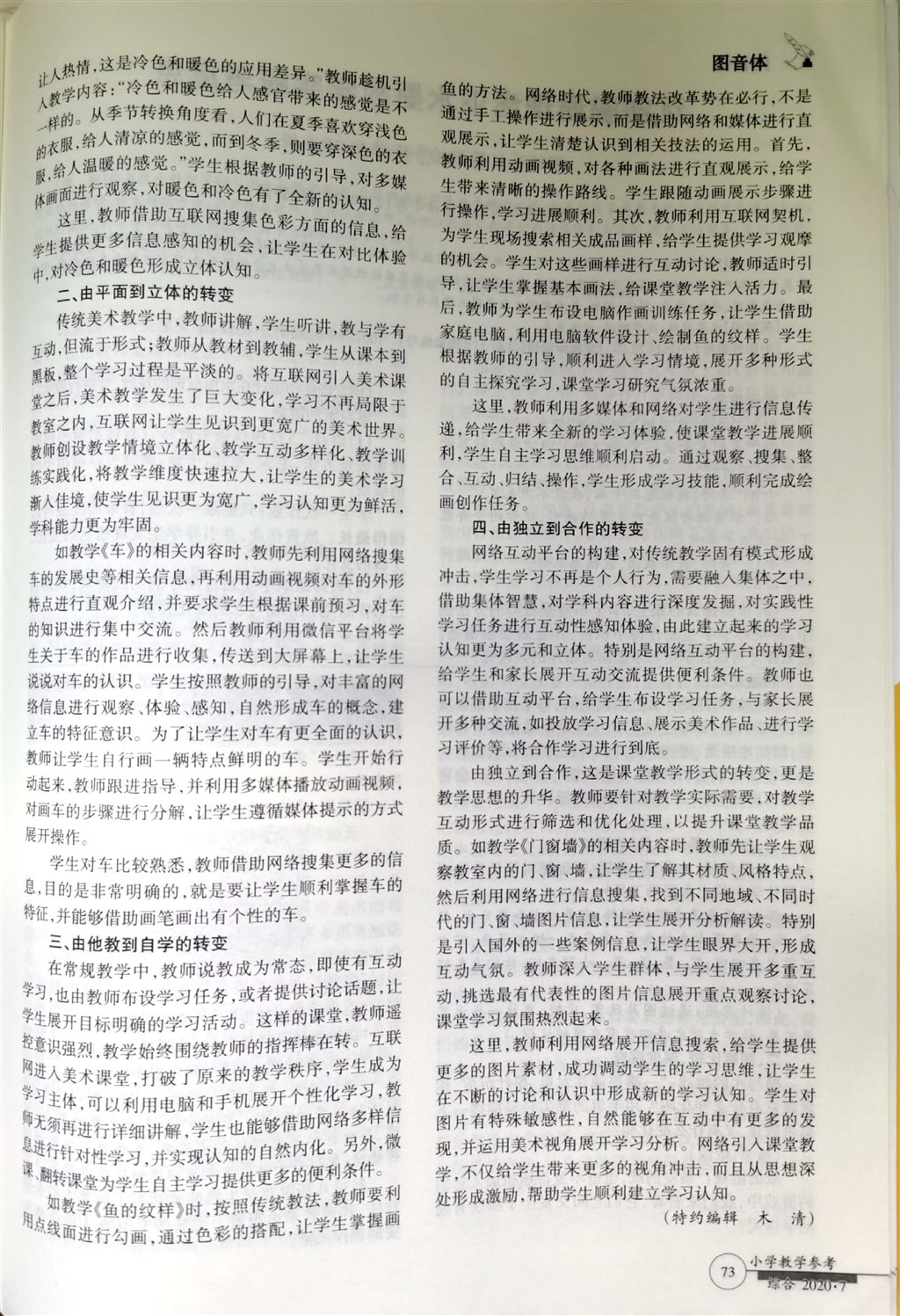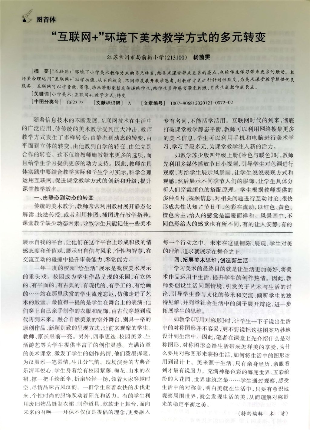 发表论文《互联网+环境下小学美术教学方式的多元改变》
