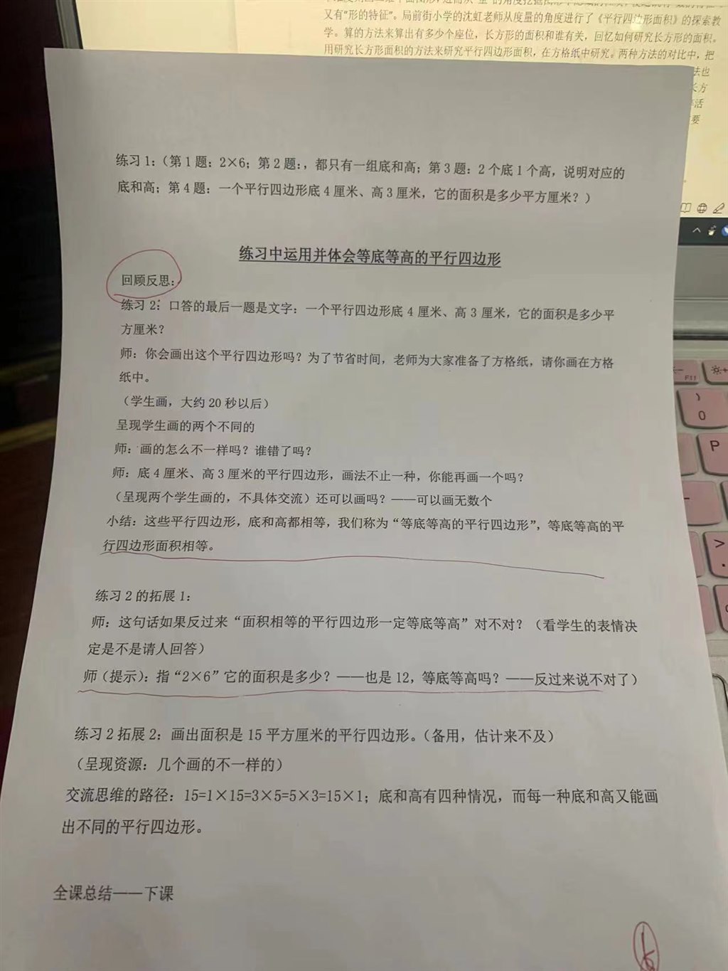 关键课例:五年级《平行四边形的面积》教学设计